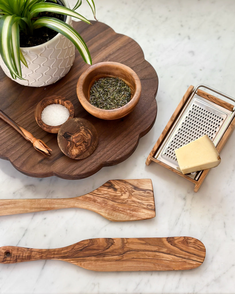Designed to rotate smoothly, it’s perfect for serving, entertaining, or keeping your most-used items within easy reach. A beautiful, functional accent that complements our scalloped boards and cutting boards—creating a cohesive, heirloom-quality collection for your home.