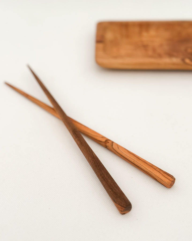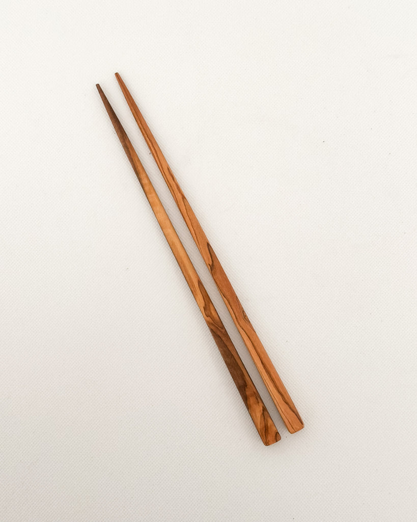 Expertly crafted from olive wood, these chopsticks have a distinct appearance due to the tightly grained wood. While being lightweight, they are highly durable and will not splinter or crack like bamboo chopsticks. The sleek finish provides a comfortable grip and is designed to improve with age. Pairs beautifully with our Olive Wood Rectangular Plate.