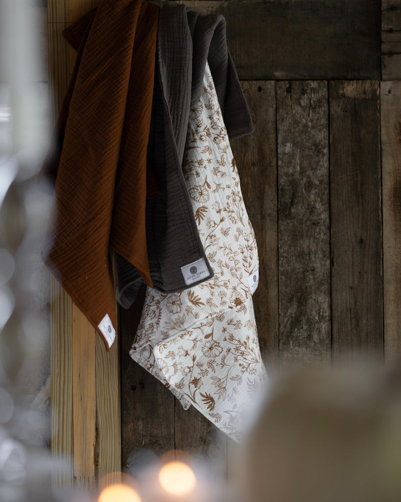 Our four-ply cotton gauze kitchen towels are designed to be the ultimate multi-use tool in your kitchen. Whether you're using them as towels, wrapping freshly baked bread, or presenting a bottle of wine, these linens combine form and function beautifully.