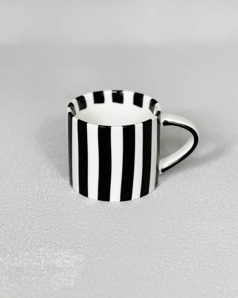A classic pattern with modern charm. Our Petite Black & White Striped Mug adds a playful yet refined touch to your morning coffee or evening cocoa. Handcrafted ceramic with a glossy finish, it’s designed to feel substantial in hand while keeping your favorite drinks perfectly warm.