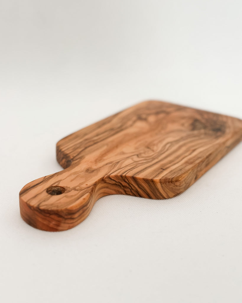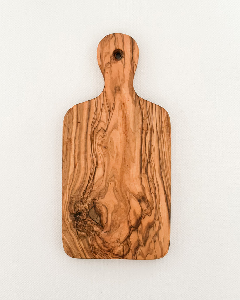 Crafted from durable olive wood, this paddle board is a stunning and practical addition to your kitchen. Its unique grain pattern ensures each board is one-of-a-kind, perfect for effortlessly slicing and dicing a variety of foods. The natural oils in the wood make it resistant to bacteria, ensuring safe food preparation. It even comes with a convenient hanging hole for easy storage when not in use.