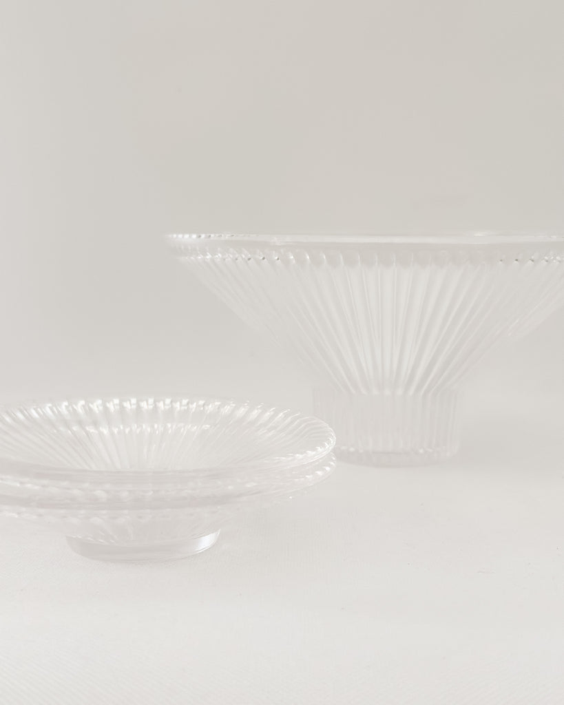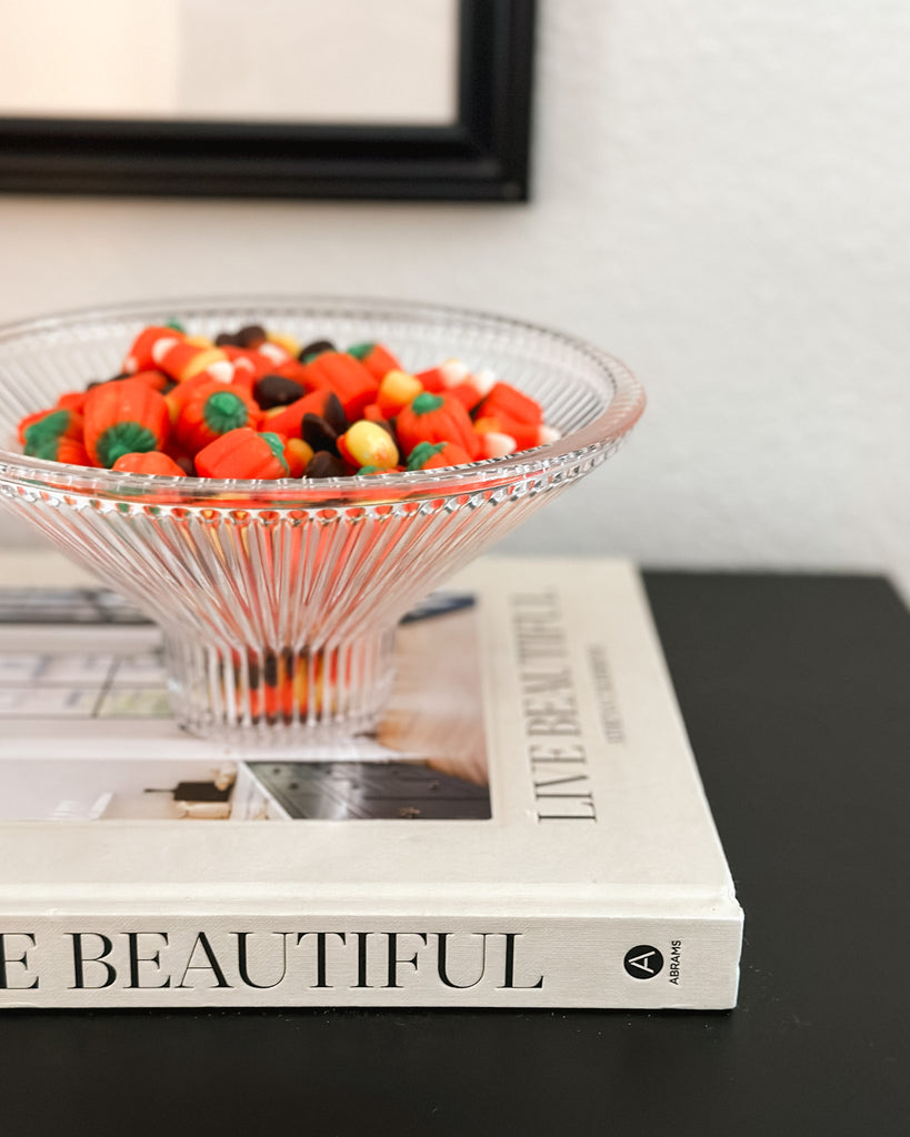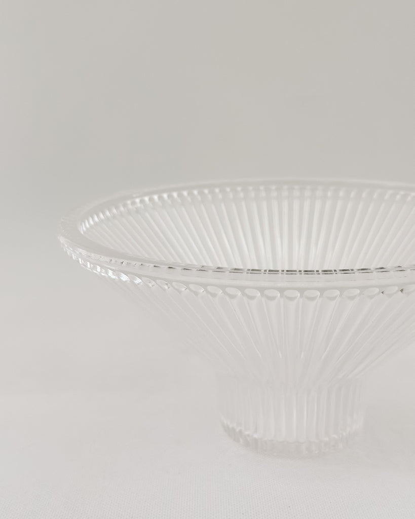 Our versatile Pressed Glass Bowl combines elegance with function. Featuring a sturdy footed base and textured, flared top, it’s perfect as a decorative piece, candy dish, or serving bowl. Pairs perfectly with our Press Glass Plates.