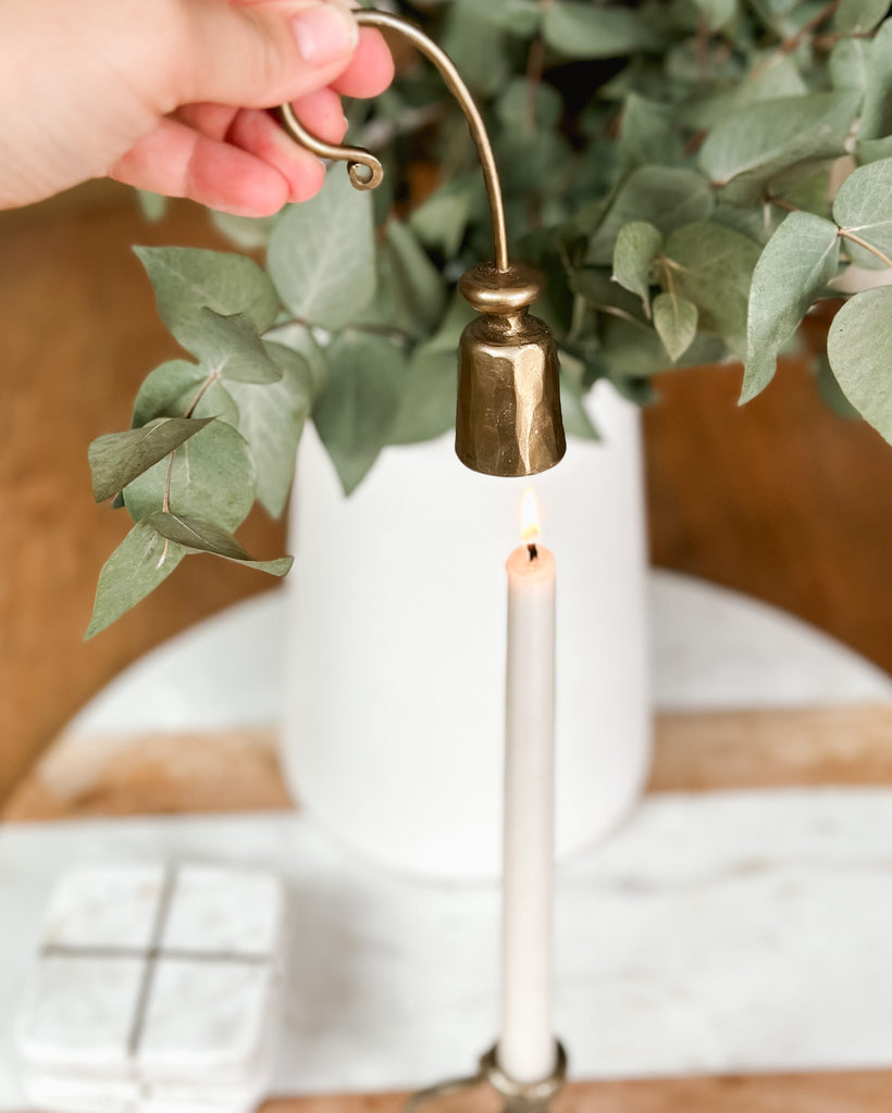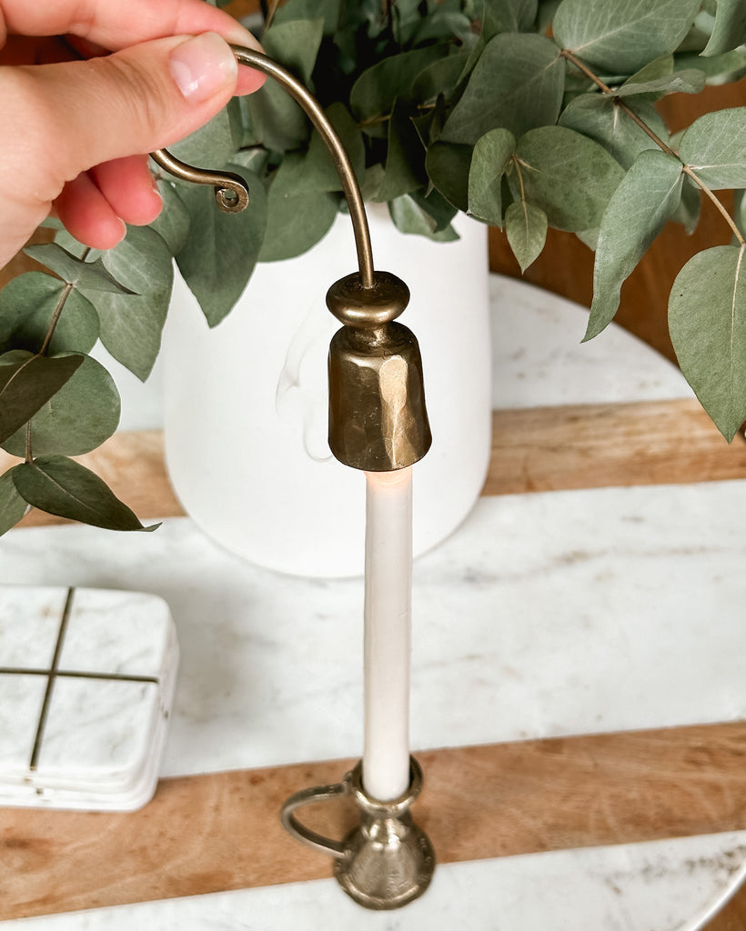Extinguish candles properly with our vintage-inspired brass snuffer. Designed to safely snuff out tapers without the mess of hot wax, this stylish tool protects your home while preserving the candle’s lifespan. Its classic brass finish adds a touch of timeless charm to any setting, making it practical and decorative.