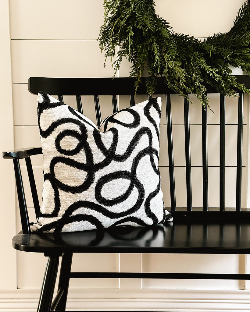 Introducing the Georgie Pillow, hand-crafted from luxurious woven chenille fabric in a contemporary looped pattern; perfect for adding a touch of style to a chair, couch, or sofa.
