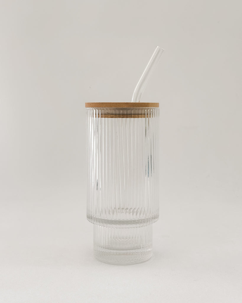 Elevate your morning sips with this beautifully crafted fluted glass tumbler. Designed for both style and function, the tumbler’s unique fluted design adds a touch of sophistication to any cold beverage. Keep your drink chilled and refreshing with the included glass straw. This bundle includes both the fluted tumbler and a bag of our Rise + Shine Cold Brew, creating the ultimate refreshment experience.