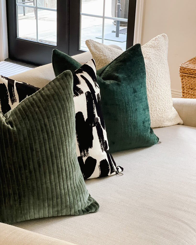 Constructed from soft yet dense upholstery grade velvet fabric with a custom industrial brass ring zipper closure. This velvet ribbed fabric will add texture and warmth to any room in your home this holiday season and all winter long.