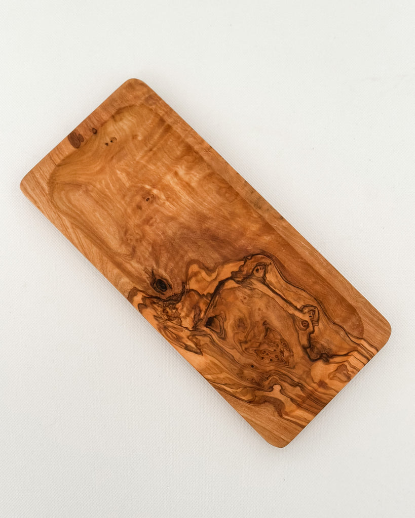 Enhance your dining experience and make a lasting impression on your guests with our Olive Wood Rectangular Plate. Ideal for serving small bites, such as sushi, this plate adds a touch of timeless elegance to any meal. Whether used as a functional serving dish or a decorative piece, this plate will quickly become a staple in your kitchen.